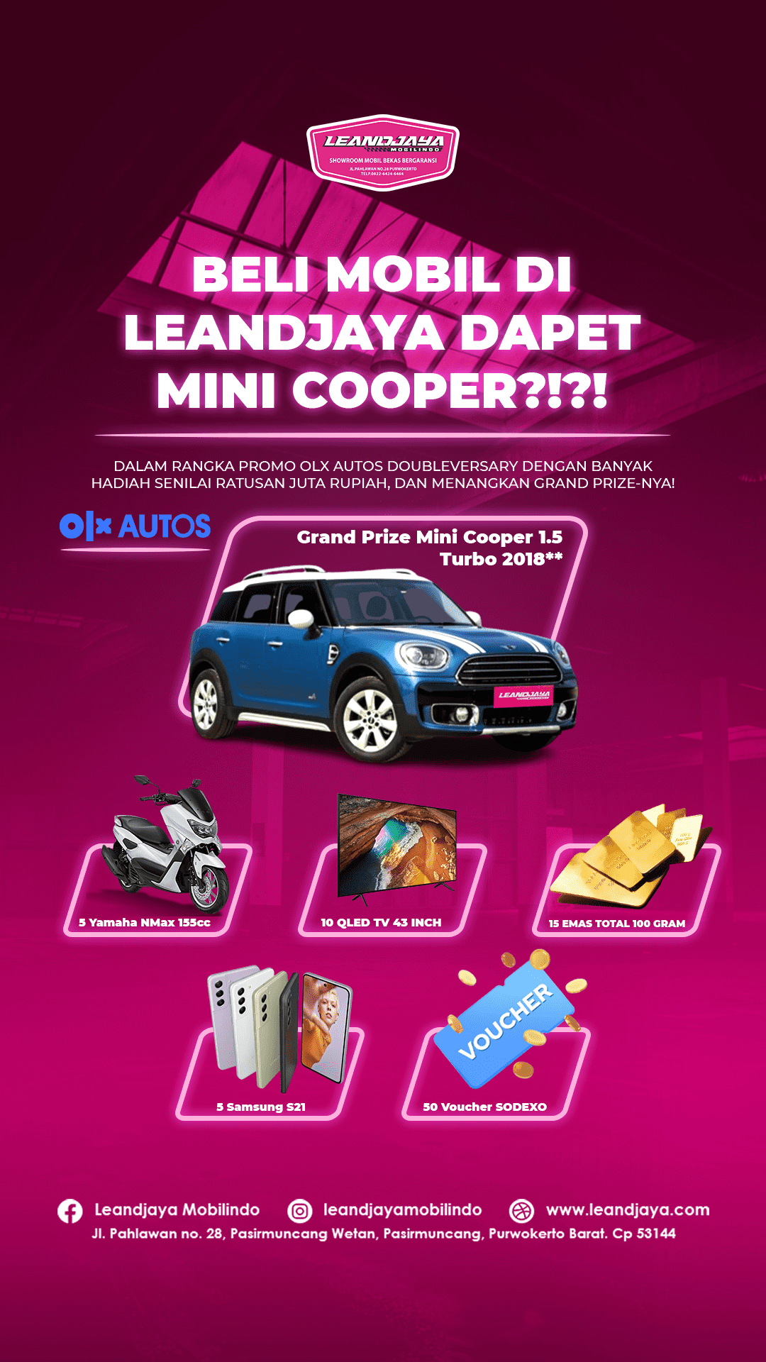 Dalam rangka promo OLX Autos Doubleversary ada banyak hadiah senilai ratusan juta rupiah.
